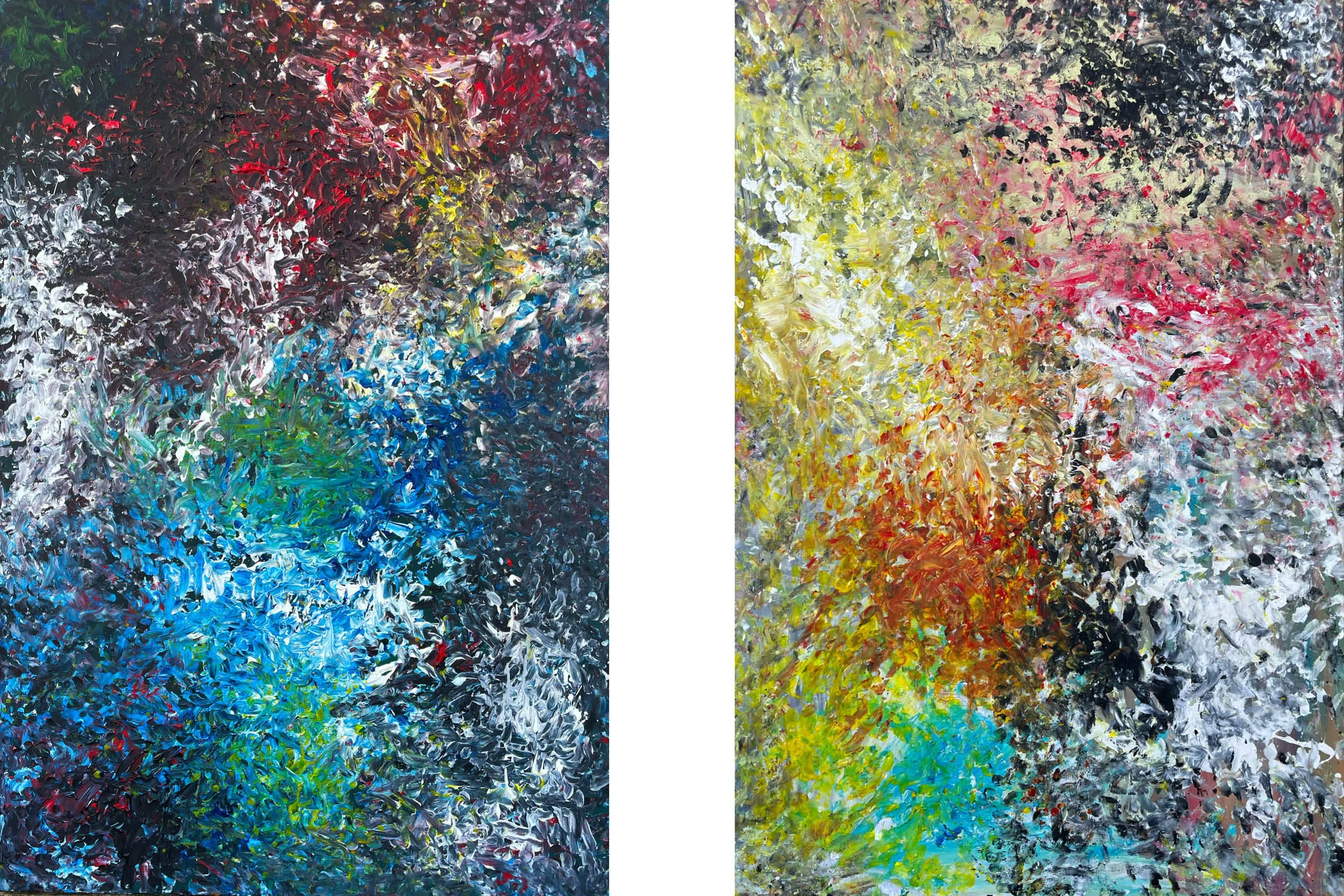 Hand and finger paintings - acrylics applied with hands on canvas 1000x1495mm
